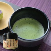 昔ながらの石臼で挽き上げた、口当たりのまろやかな抹茶です。お濃い茶でもお薄茶でもお楽しみいただけます。(プルトップ缶)